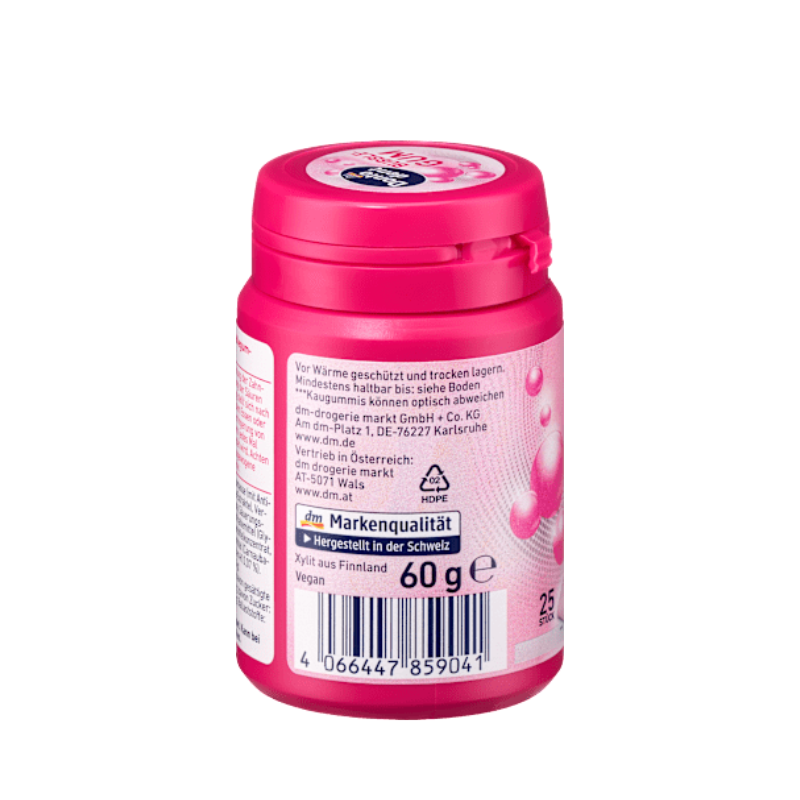 استمتع بنكهة العلكة الكلاسيكية المليئة بالحنين مع الحفاظ على صحة أسنانك مع Dontodent Bubblegum Chewing Gum. محلاة بنسبة 69% من زيليتول، وخالية من السكر والأسبارتام، لتمنحك انتعاشًا مع عناية فعّالة بالأسنان. مناسبة للكبار والأطفال من عمر 3 سنوات فأكثر.