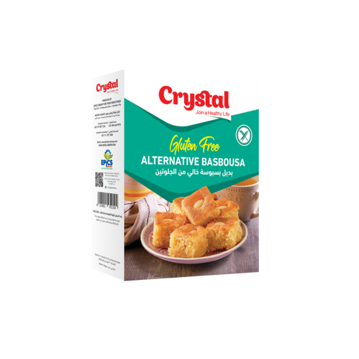 بسبوسة كريستال الخالية من الجلوتين تقدم لك بسبوسة صحية ولذيذة، مصنوعة من دقيق السميد الأرز والذرة الصفراء، لتناسب احتياجاتك الغذائية بدون التضحية بالطعم الأصلي للبسبوسة التقليدية.
