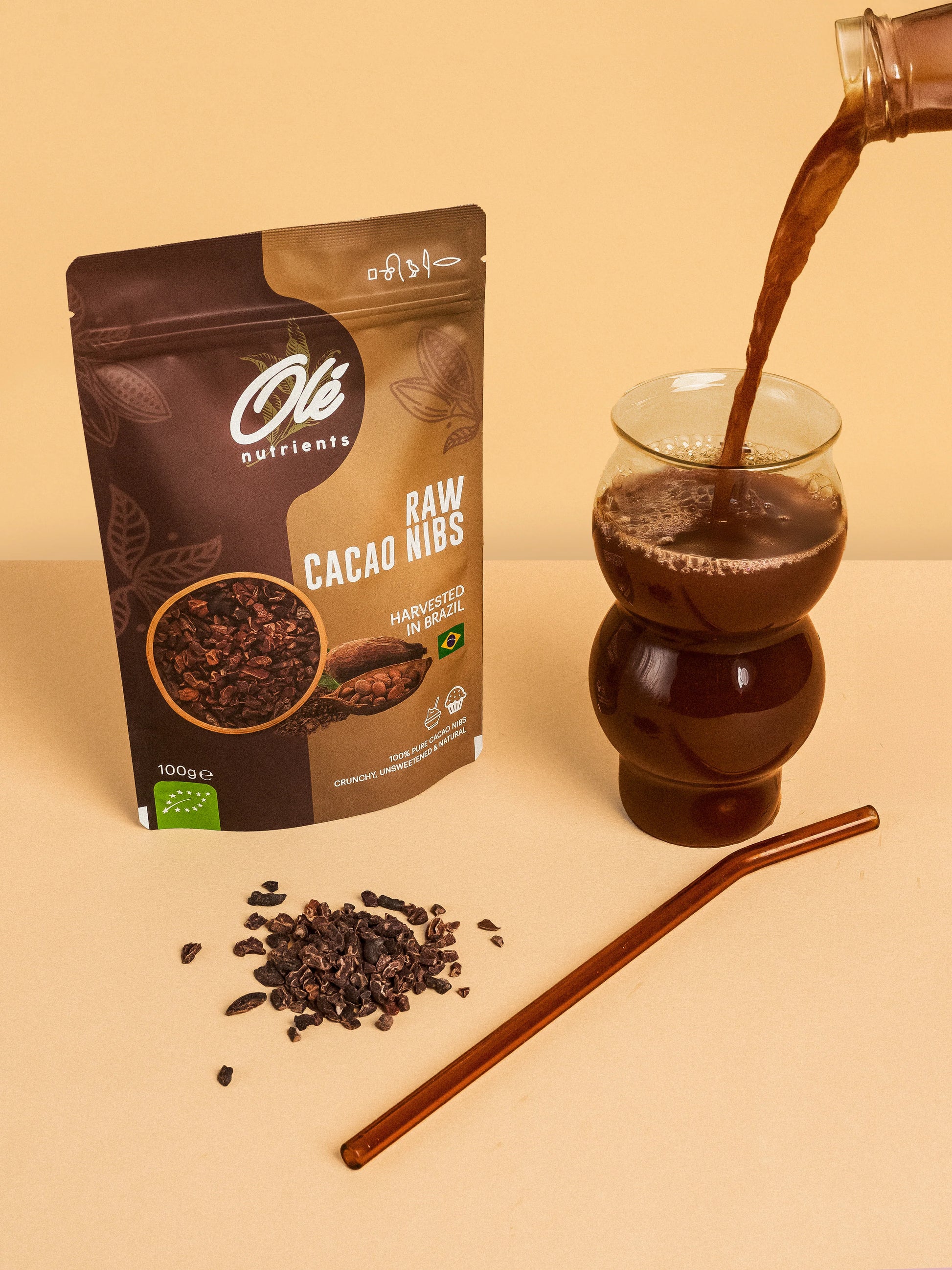 رقائق الكاكاو (Cacao Nibs) لدينا نقية 100%، معالجة بأقل قدر ممكن، ومصادرها أخلاقية من أفضل حبوب الكاكاو — لتمنحك نكهة غنية، وقرمشة ممتعة، وكنزًا من العناصر الغذائية في كل قضمة.